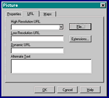 Note: You can also enter the URL for a "remote" image rather than specifying a file name for a local image. More information on this and other advanced image options available from the Picture Dialog Window, like special border and positioning functions, are discussed in detail in the Advanced Image Functions. | ||