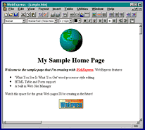 It's important to remember that in WebExpress your image will be treated as part of a paragraph, whether on a line by itself or inserted between text. You can even place an image in the middle of a sentence, if you wish. When you change the paragraph's format or alignment, the image is repositioned accordingly. |